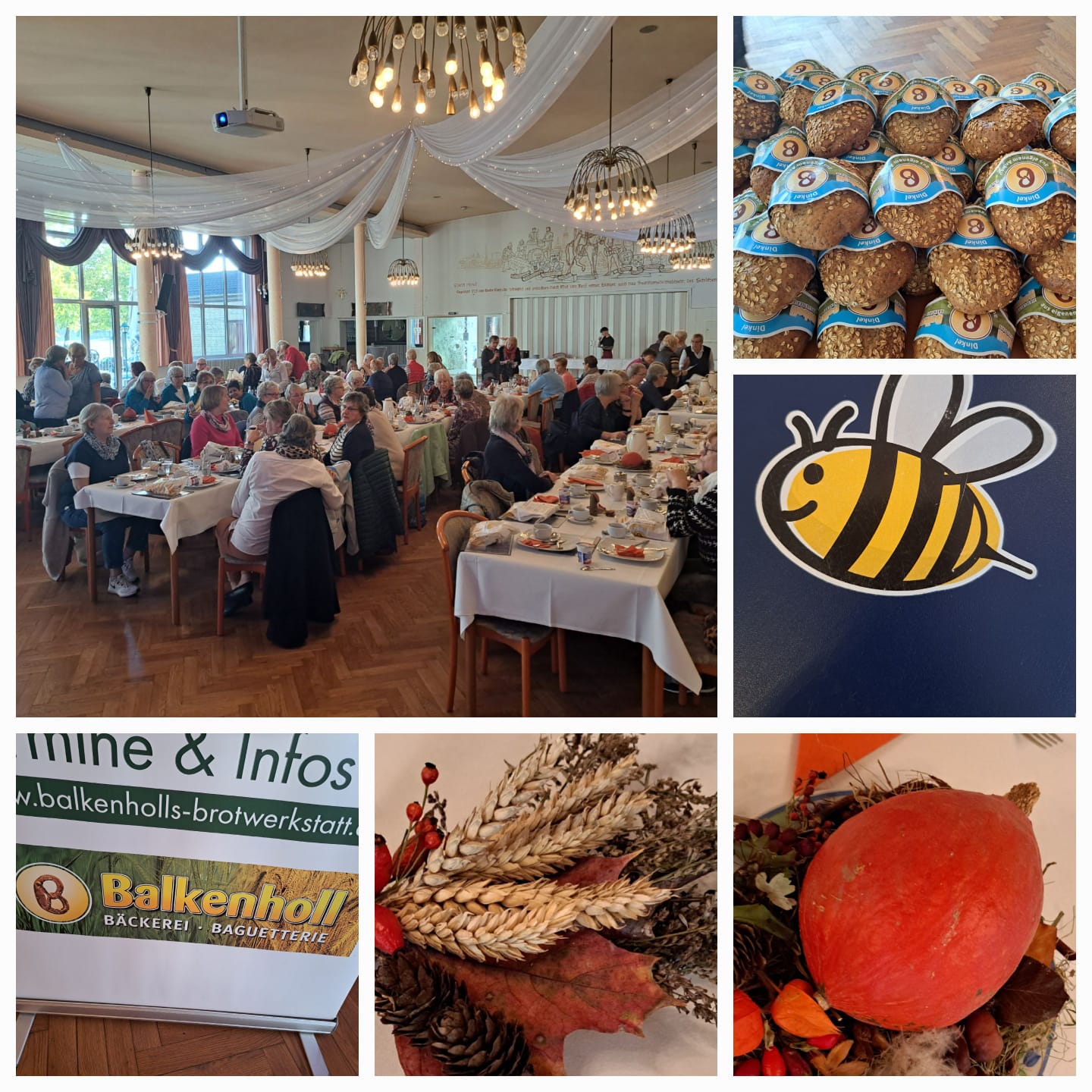 107 LandFrauen kamen zur Erntedankfeier mit Frühstücksbüffet in das Schützenhaus Peine. Herr Balkenholl, Bäckermeister und Brotsomelier aus Sievershausen, stellte seinen seinen Betrieb und vor und sagte, wie wichtig für ihn die Regionalität ist. Seine Rohstoffe bezieht er aus der Region, er arbeitet mit der ortsansässigen Landwirtschaft zusammen. Eier und Milch kommen aus dem Umkreis und ein befreundeter Landwirt baut für Balkenholl den Dinkel an, der in einer Mühle in Langelsheim für ihn verarbeitet wird.